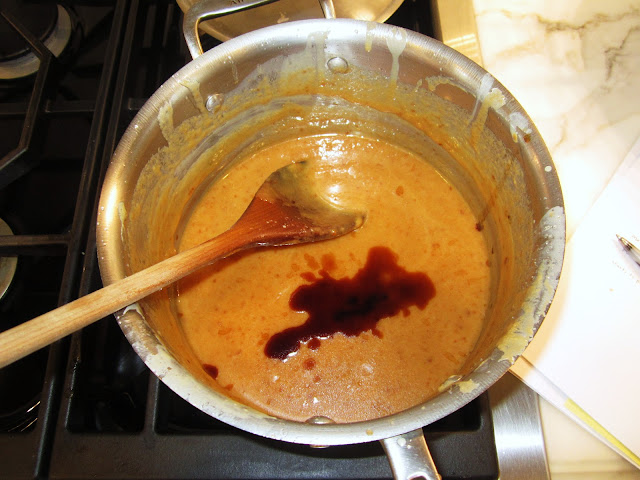 > If you plan to stop here and work on it later: When the caramel has reached the appropriate temperature, turn off your stove and immediately remove the pot from the heat. Then stir in the vanilla. Pour the caramel into your prepared pan. Let cool completely and cover with plastic wrap or tin foil (I used foil).